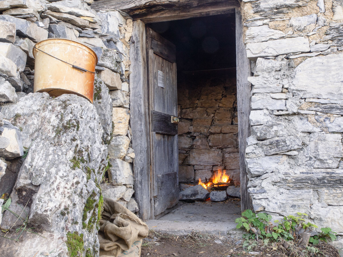 Nei primi 2-3 giorni i castégn i sa bagnan (evaporazione dell’acqua contenuta), poi cominciano ad essiccare. Quando cominciano a cantá, dopo 10-12 giorni, vengono rimestati gli strati”. Le famiglie che possedevano molti alberi usavano, dunque possedevano, il secondo tipo di graa. Si tratta di una costruzione isolata, di piccole dimensioni, spesso pressoché quadrata di 3m di lato, generalmente a due piani, in muratura, col tetto ad uno spiovente e copertura in piode. La copertura è importante in quanto il tetto deve lasciar uscire il fumo. Generalmente questo tipo di graa è localizzato al margine del villaggio o in posizione discosta come ad esempio a Cabbio, Monte, Muggiasca. Un buon numero si trova appena sopra il limite superiore delle selve castanili come è il caso delle graa di Roncapiano, di Batuela, e Ai Sassi sopra Monte. Un abbinamento interessante è quello di Batuela: qui la nevèra è affiancata alla graa, la trave di colmo è la medesima e sostiene il tetto di entrambe le costruzioni.
